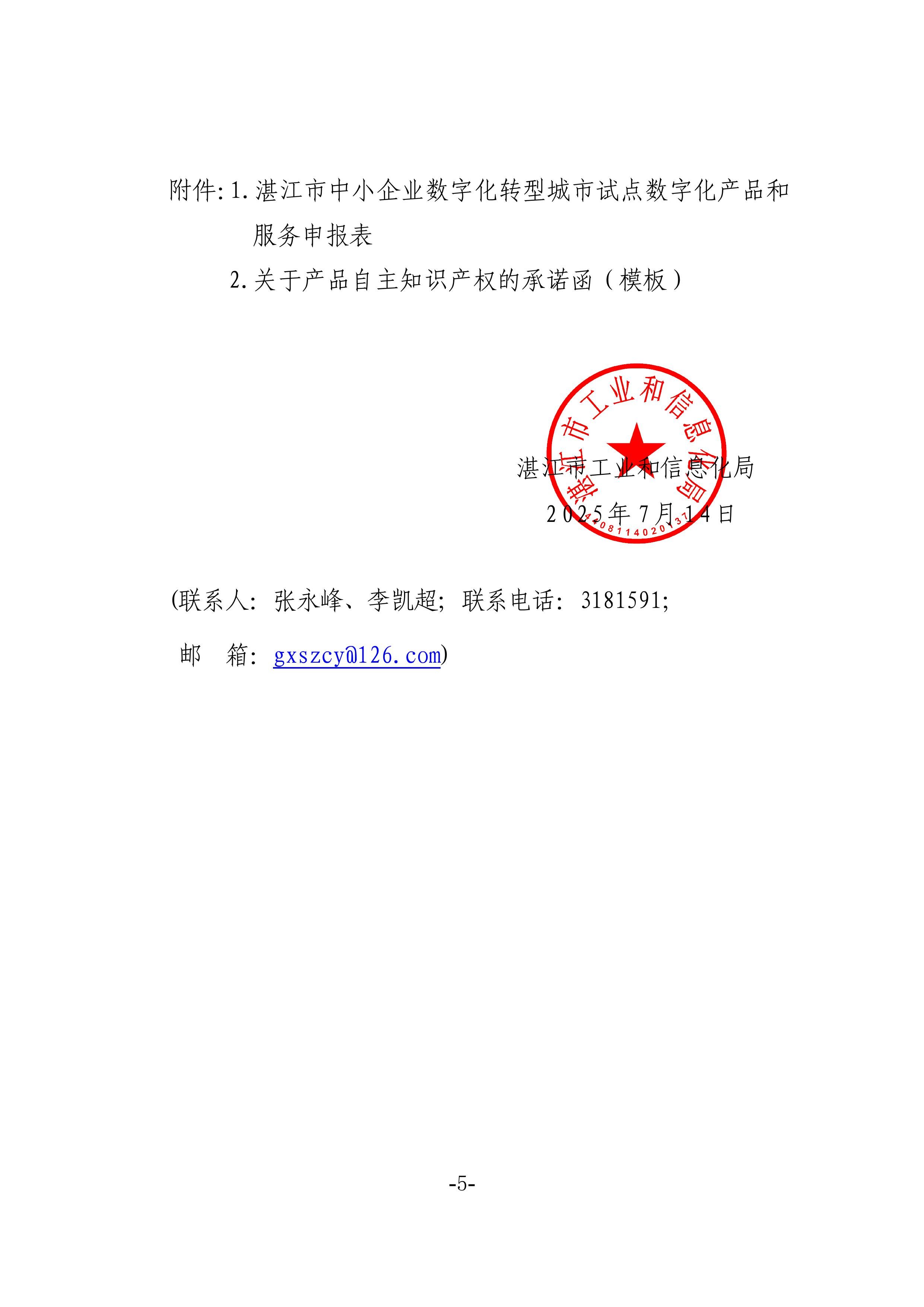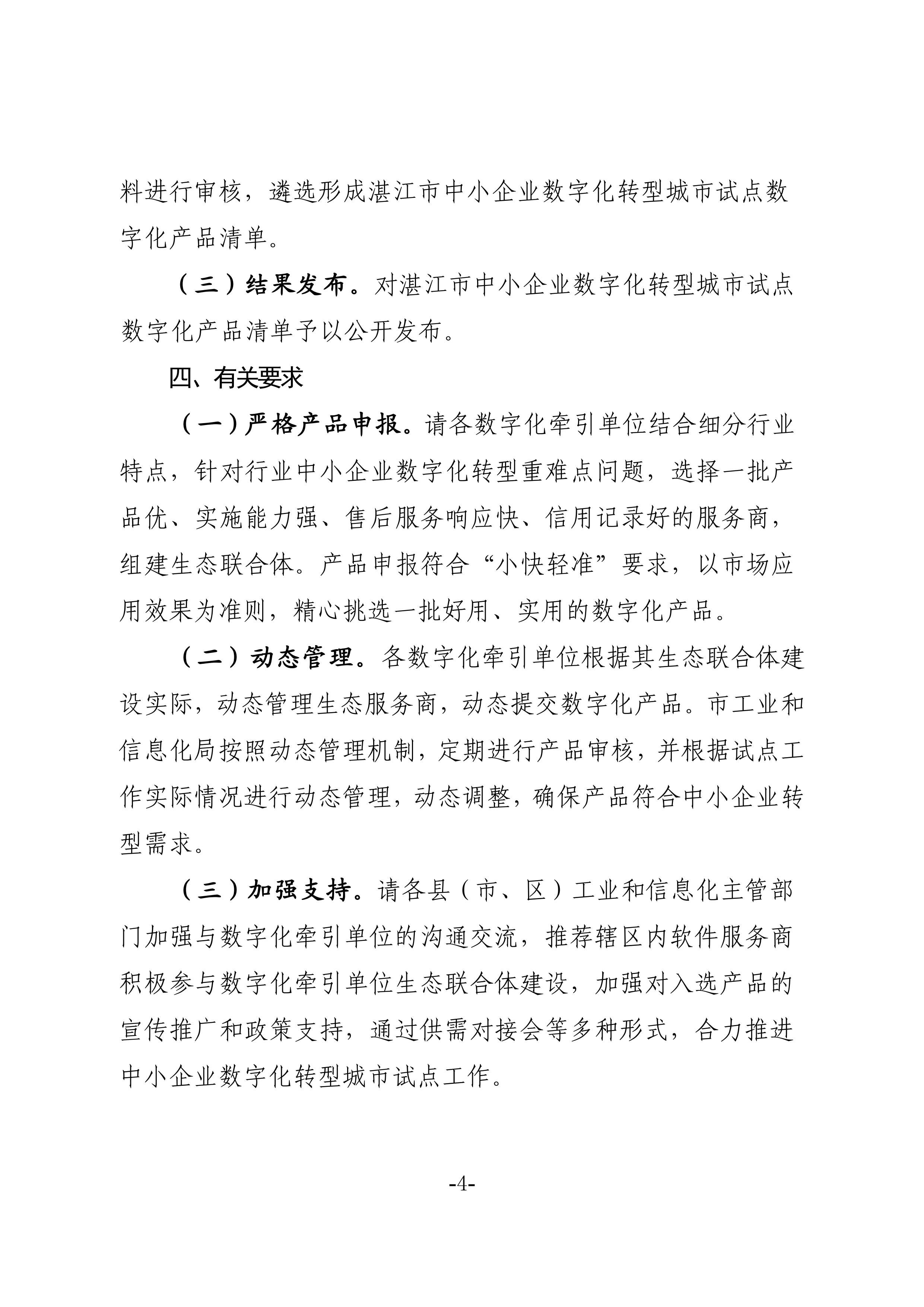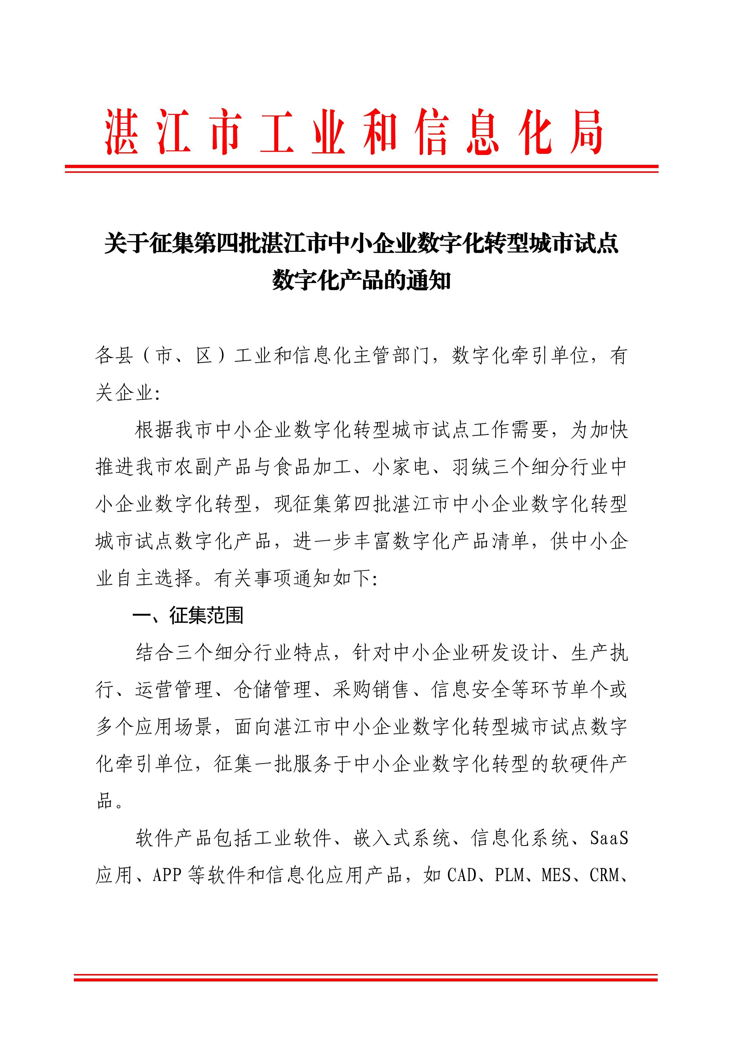关于征集第四批湛江市中小企业数字化转型城市试点数字化产品的通知(盖章正文)